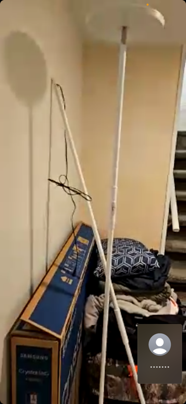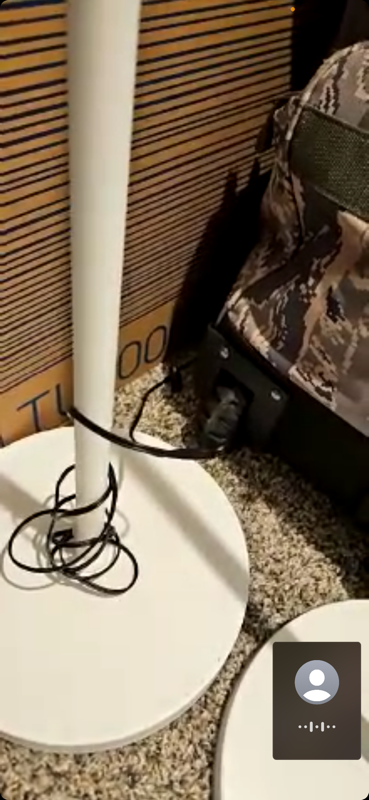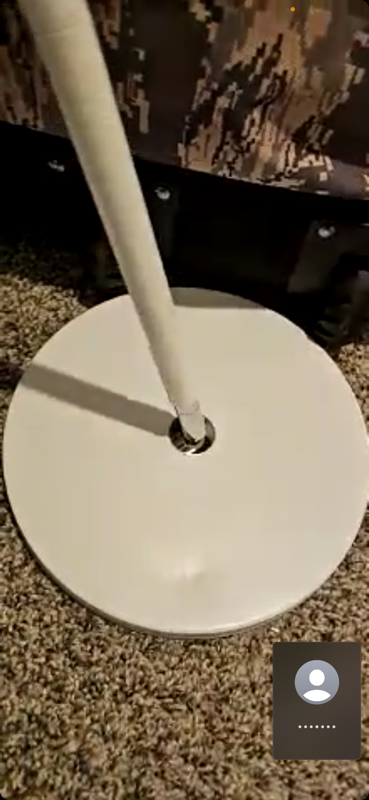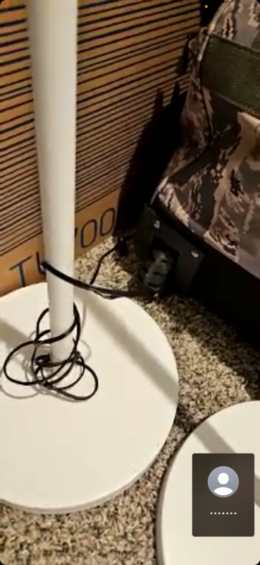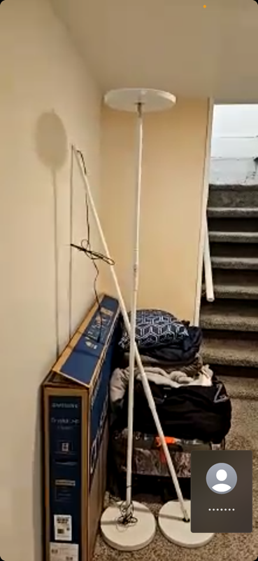The two identical white lamps have dents on the base and are leaning sideways. This appears to be new transit damage. Similar: $69.35 each https://www.lowes.com/pd/Globe-Electric-Dixon-65-in-Matte-White-Torchiere-Floor-Lamp/5013382277
