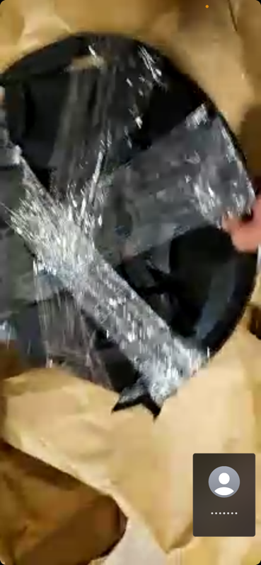 The lid and the back of the stainless-steel trashcan are both dented. There was no damage noted at origin for this item, this appears to be new transit damage. Similar: $44.99 https://www.amazon.com/Fingerprint-Stainless-Kitchen-Garbage-Removable/dp/B09L7XFQTV/ref=asc_df_B09L7XFQTV/