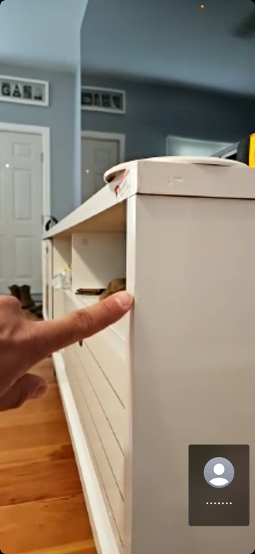 The white TV stand rsf panel has a black scuff mark near the top and a dent near the front edge. This appears to be new transit damage, not repairable, this is compressed wood. Similar: $298.50 https://www.wayfair.com/furniture/pdp/hashtag-home-allegra-tv-stand-for-tvs-up-to-50-w005933018.html