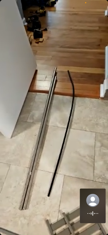 The curtain rods are badly warped into a deep curve from transit.